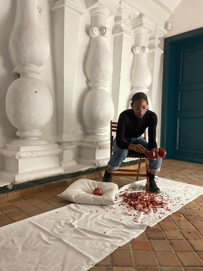 My artistic practice is based on personal experiences as a racialized woman. My research examines how performance art and storytelling are catalysts to transform racial trauma embedded in the body. I use performance art to analyze connections between identity, body and mind. My movement-based practice unpacks long-term tensions stored in the body.